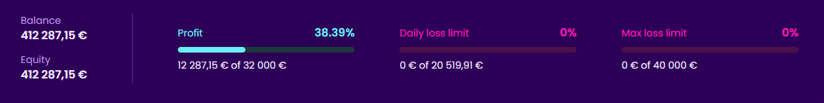 +3.07% w 9 dni na koncie $400k. Wynik jest pozytywny i trend jest wzrostowy — potrzeba jedynie dyscypliny na GER40p, żeby utrzymać kierunek.
